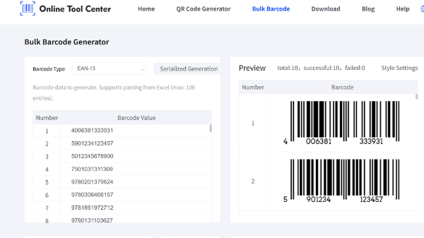 Ingyenes tömeges vonalkód generátort keres? Ismerje meg a legfontosabb funkciókat: gyorsan és vízjelek nélkül generáljon 128-as kódot, UPC-t és EAN-vonalkódokat, és töltse le őket rugalmas képformátumokban, például PNG-ben.